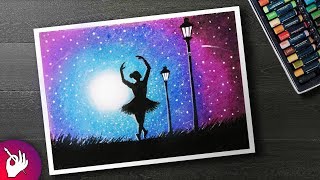 How To Draw Moonlight Girl Dance Scenery With Oil Pastel Step By